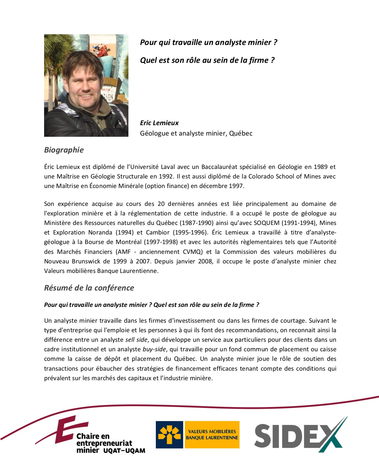 M. Éric Lemieux, analyste minier, Banque Laurentienne