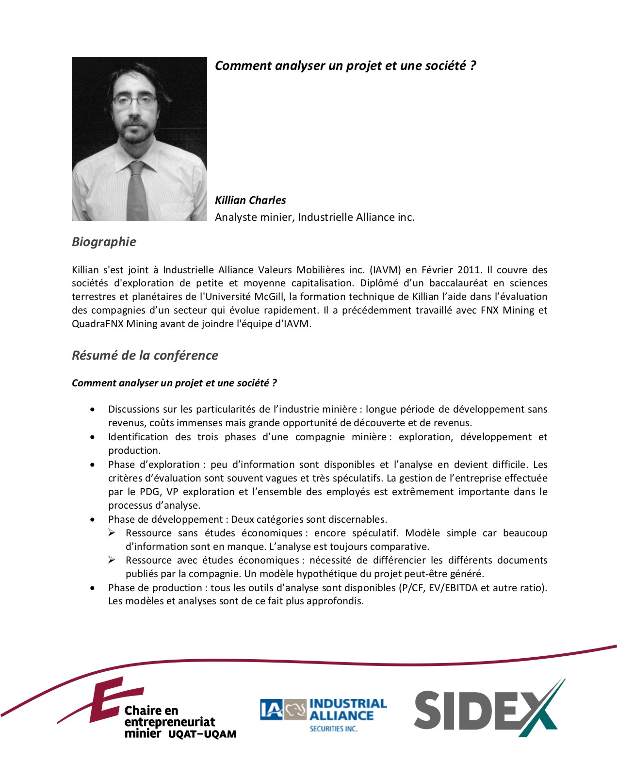 M. Killian Charles, analyste minier, Industrielle Alliance inc.
