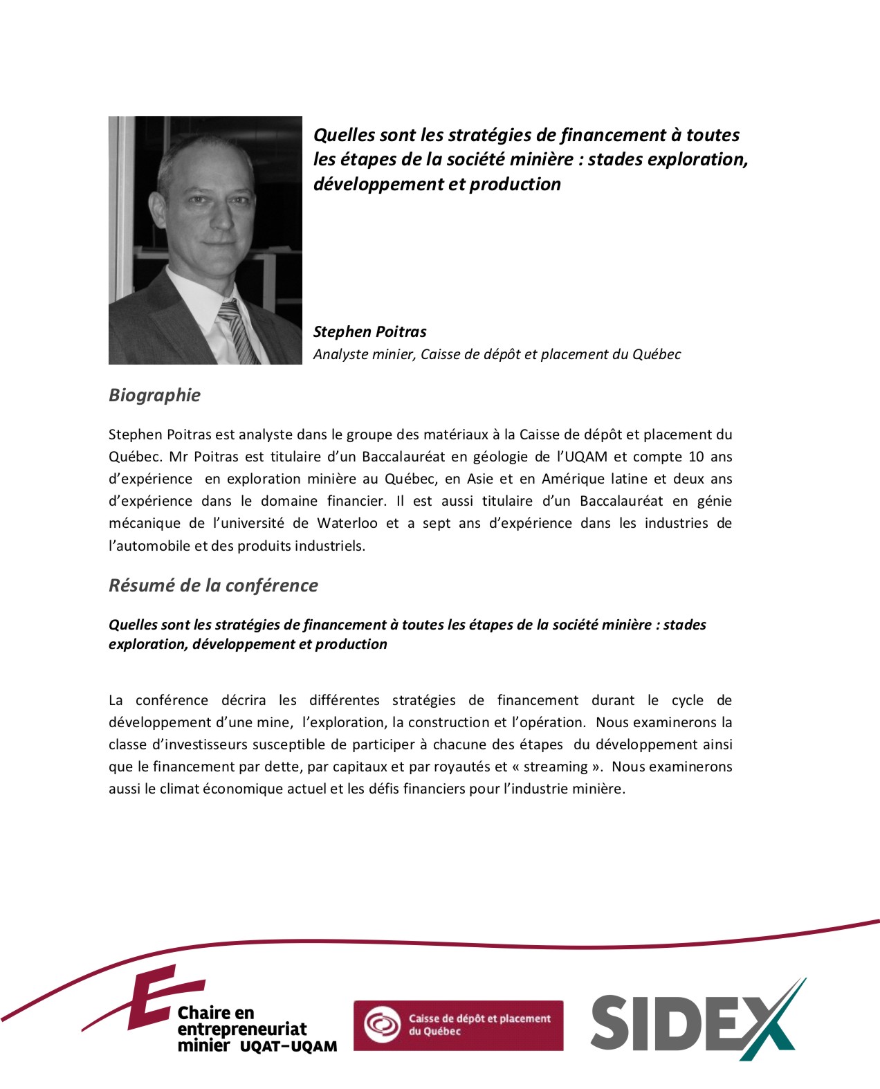 M. Stephen Poitras, analyste minier, Caisse de dépôt et placement du Québec