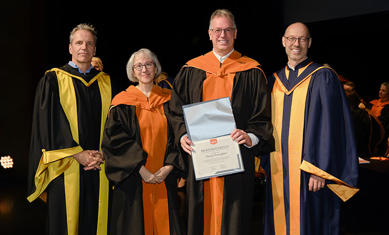 L’UQAT décerne le titre de professeur émérite à François Godard en reconnaissance de sa contribution exceptionnelle à l’enseignement, à la recherche et au développement du génie et des sciences appliquées. Dès son arrivée en 1988, il a joué un rôle déterminant dans l’essor du génie à l’UQAT et dans l’agrément des programmes de premier cycle à l’échelle nationale. Spécialiste en caractérisation et modélisation des biocomposites et des procédés industriels, il a cofondé et codirigé le Laboratoire de biomatériaux de La Sarre, aujourd’hui reconnu à l’échelle nationale. Son enseignement de grande qualité, son engagement constant et sa disponibilité auprès des étudiants et étudiantes lui ont valu de nombreuses distinctions et des évaluations élogieuses. Grâce à son dévouement et à son leadership, M. François Godard a largement contribué au rayonnement de l’UQAT, tant au Québec qu’à l’échelle internationale.