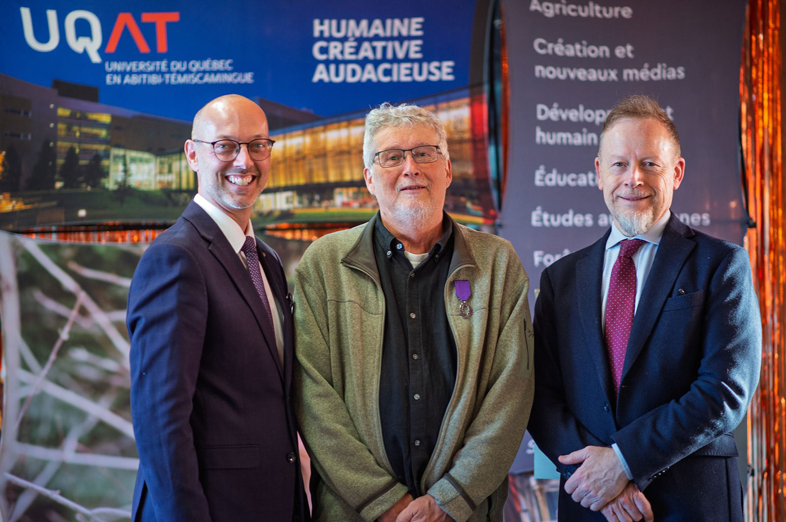 La cérémonie de remise des Palmes académiques s’est tenue le 7 octobre dernier à l’UQAT, en présence du consul général de France à Québec, M. Éric Lamouroux, venu personnellement remettre l’insigne au professeur émérite.