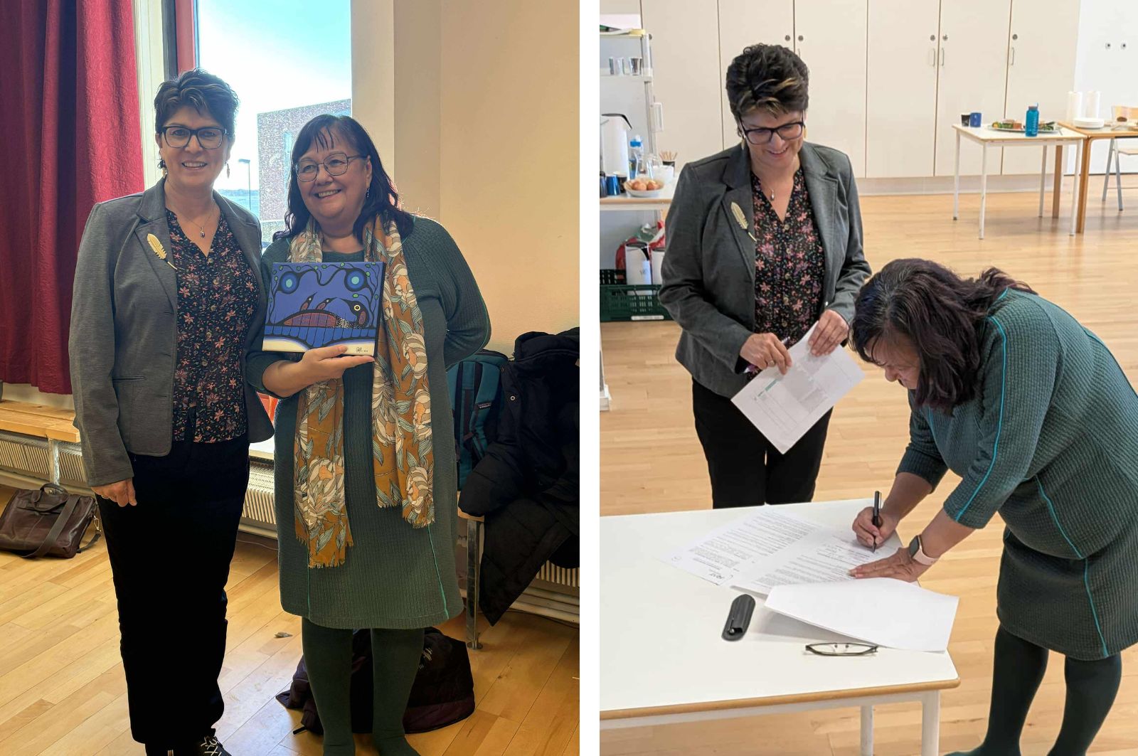 La signature officielle du renouvellement a eu lieu le 28 octobre dernier, à Nuuk, au Groenland. Étaient présents sur place la rectrice de Ilisimatusarfik, Gitte Adler Reimer, le directeur des relations internationales, Per Arnfjord ainsi que Suzy Basile, professeure à l’UQAT. Assistaient à l’évènement à distance le recteur de l’UQAT, Vincent Rousson, le vice-recteur à la recherche et à la création, Louis Imbeau, et le conseiller en développement international, Guillaume Tremblay-Bergeron.