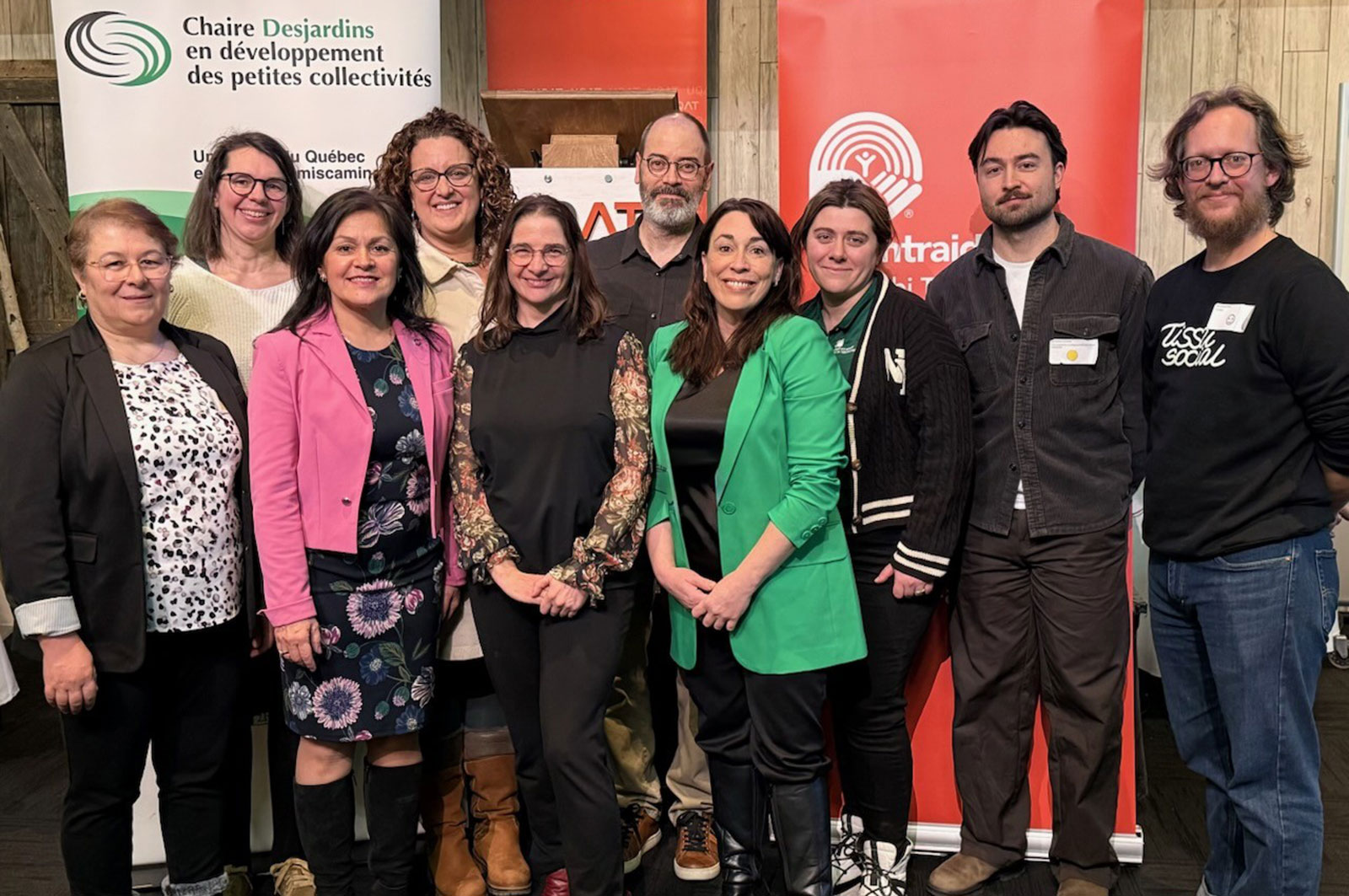 Tassadit Zerdani (CÉRSÉ), Eve-Lyne Couturier (IRIS), Chantal Parent (Caisse Desjardins de Rouyn-Noranda), Amélie Tessier (Manutex), Pascale Charlebois (UQAT), Hugo Asselin, (UQAT), Mélanie Perreault (Centraide ATNQ), Kathleen Lavigne (CIR-SHV), Pier-Antoine Lacombe (UQAT), Paul-Antoine Martel (Ville de Val-d’Or) et Marie-Josée Paradis (CJEAO) (absente sur la photo).