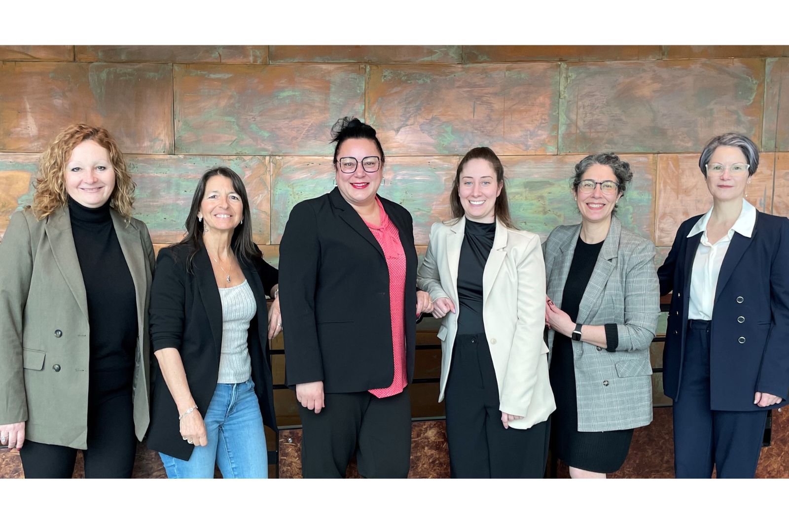 Sylvie Isabelle, professeure, Louise Lavine, secrétaire de direction, Anaïs Lacasse, professeure, Marimée Godbout-Parent, doctorante, Nancy Julien et Sophie Duhaime, professeures