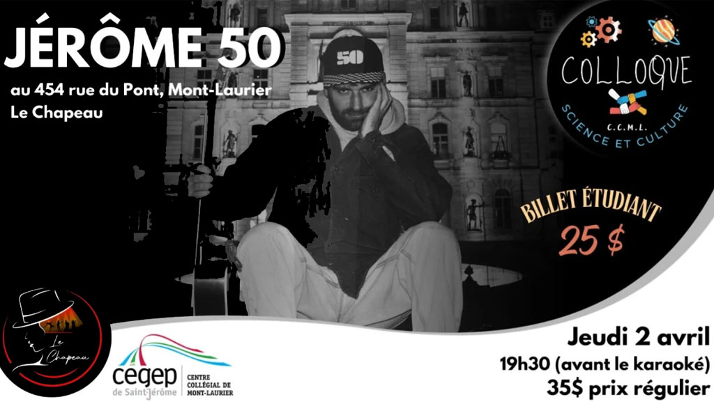 Jérôme 50, c’est un écriveur de chansons à succès, mais aussi un performeur sans égal. Puisant dans les références musicales adolescentes du tournant du millénaire, il se réapproprie les styles ska, skate-punk et folk trash, s’influençant autant de NOFX et Gogol Bordello que de Québec Redneck Bluegrass Project, Les Colocs et Les Cowboys fringants. Il y en a pour tout le monde dans ce nouveau spectacle.