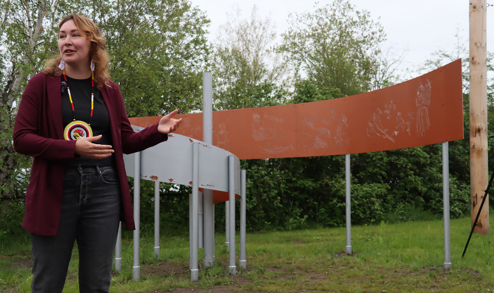 L’œuvre permanente « Ushkuai utei » ou « Coeur de bouleau » de l’artiste innue Carole Bérubé-Therrien a été inauguré sur le site de Tesabidan en juin 2025. Cette réalisation s’inscrit dans le cadre du projet de médiation artistique MADAMIKANA, piloté par l’organisme Minwashin.